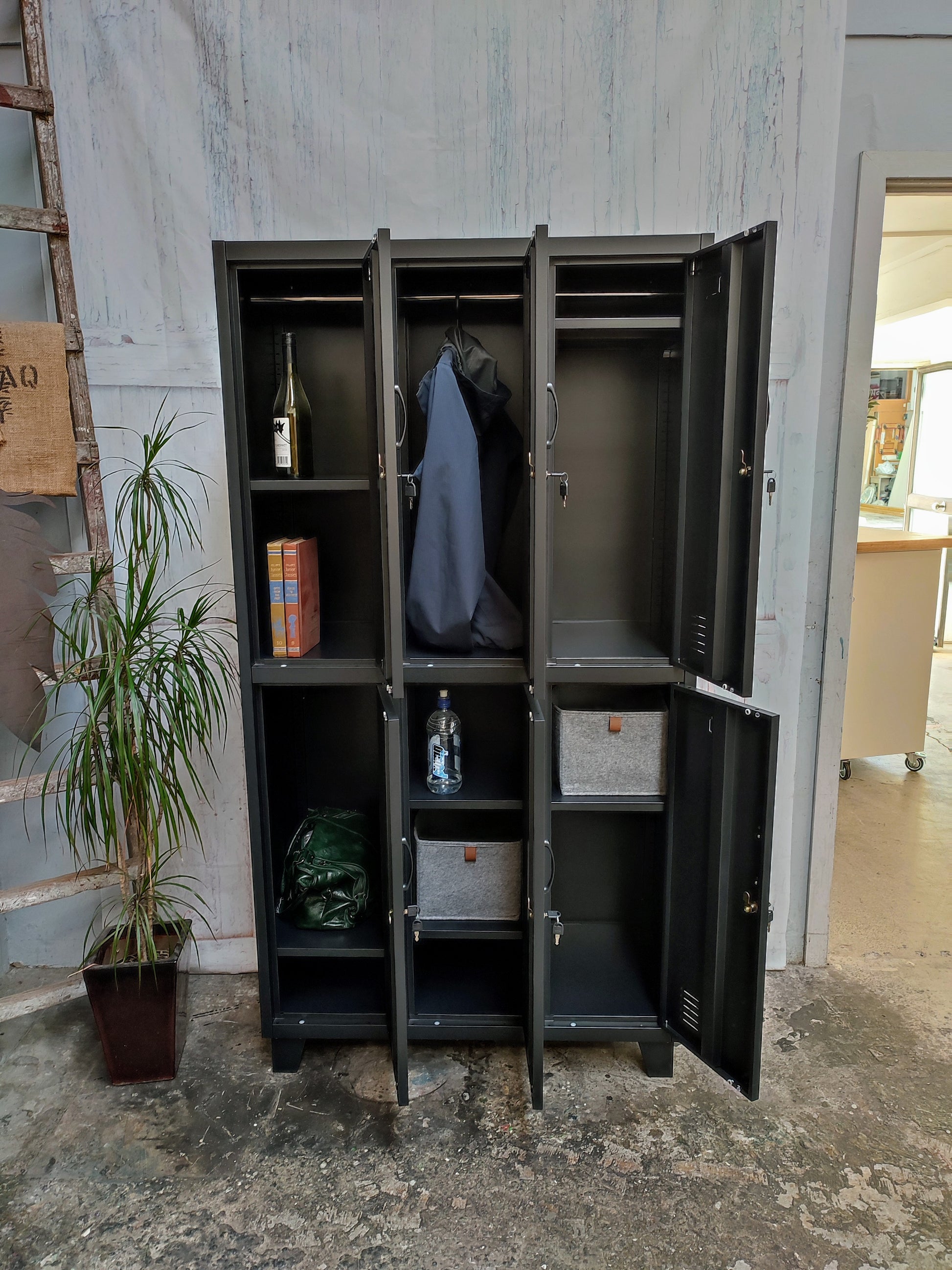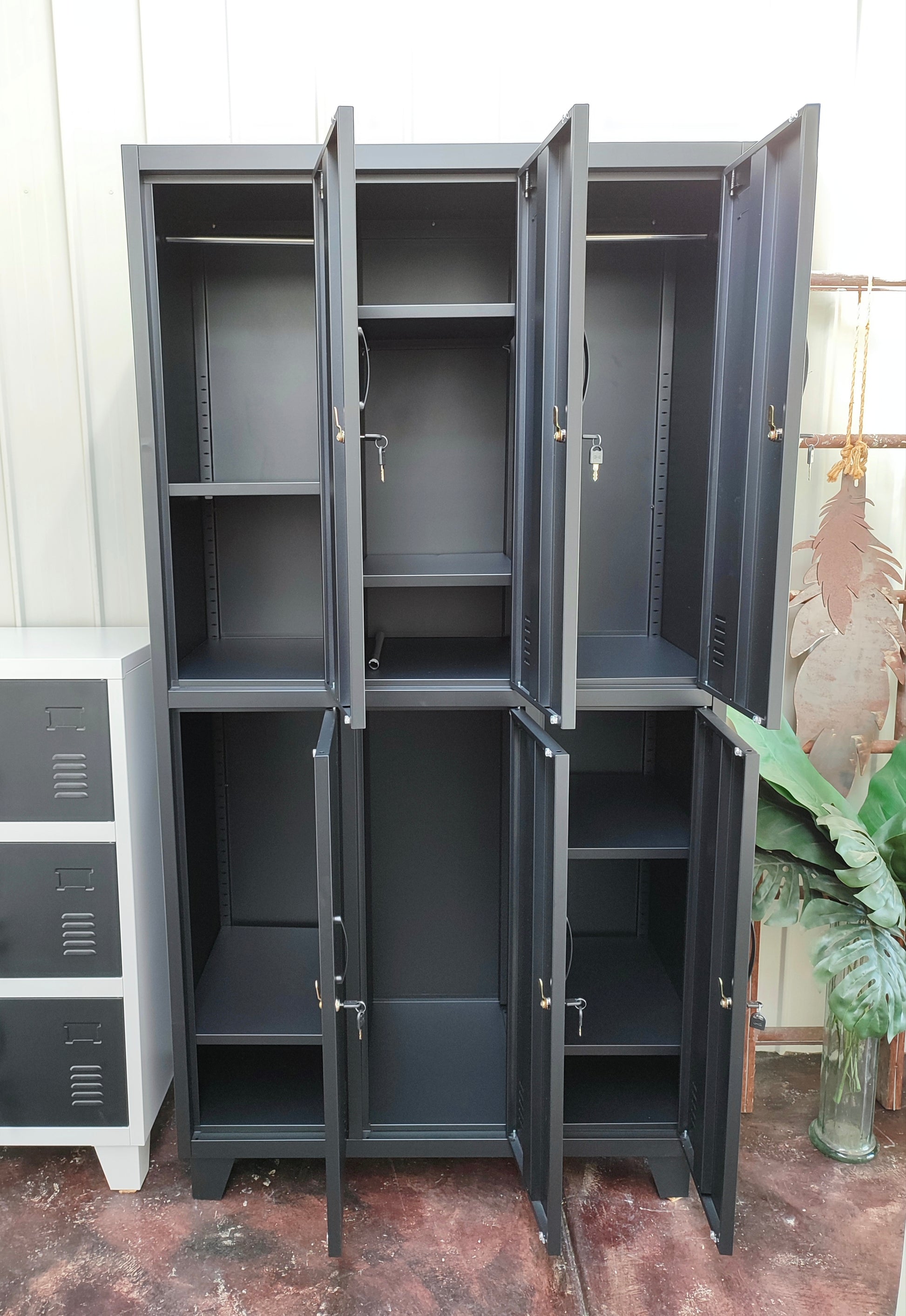 Stunning Black wardrobe locker. Adjustable shelf and hanging rod in each compartment.