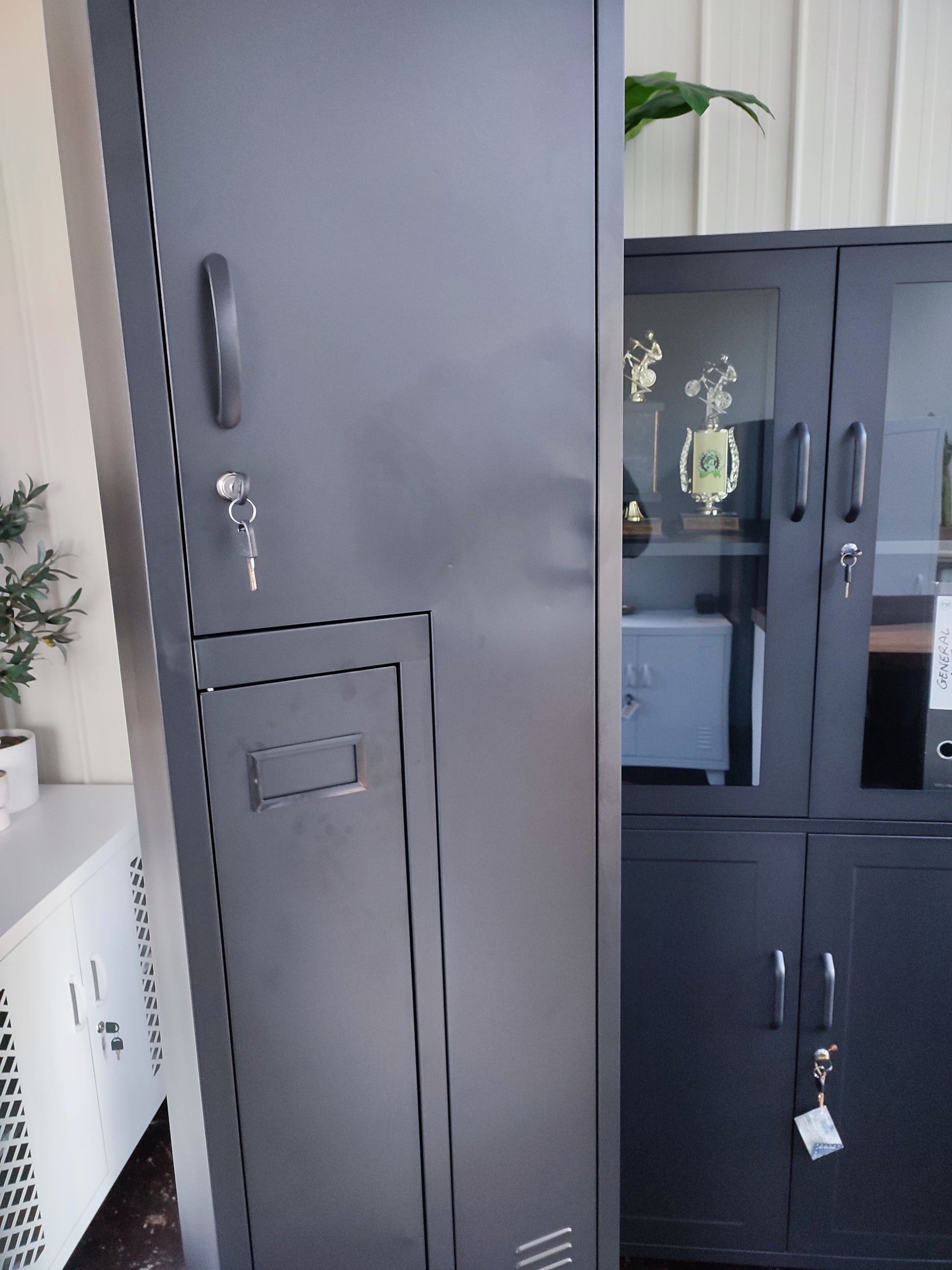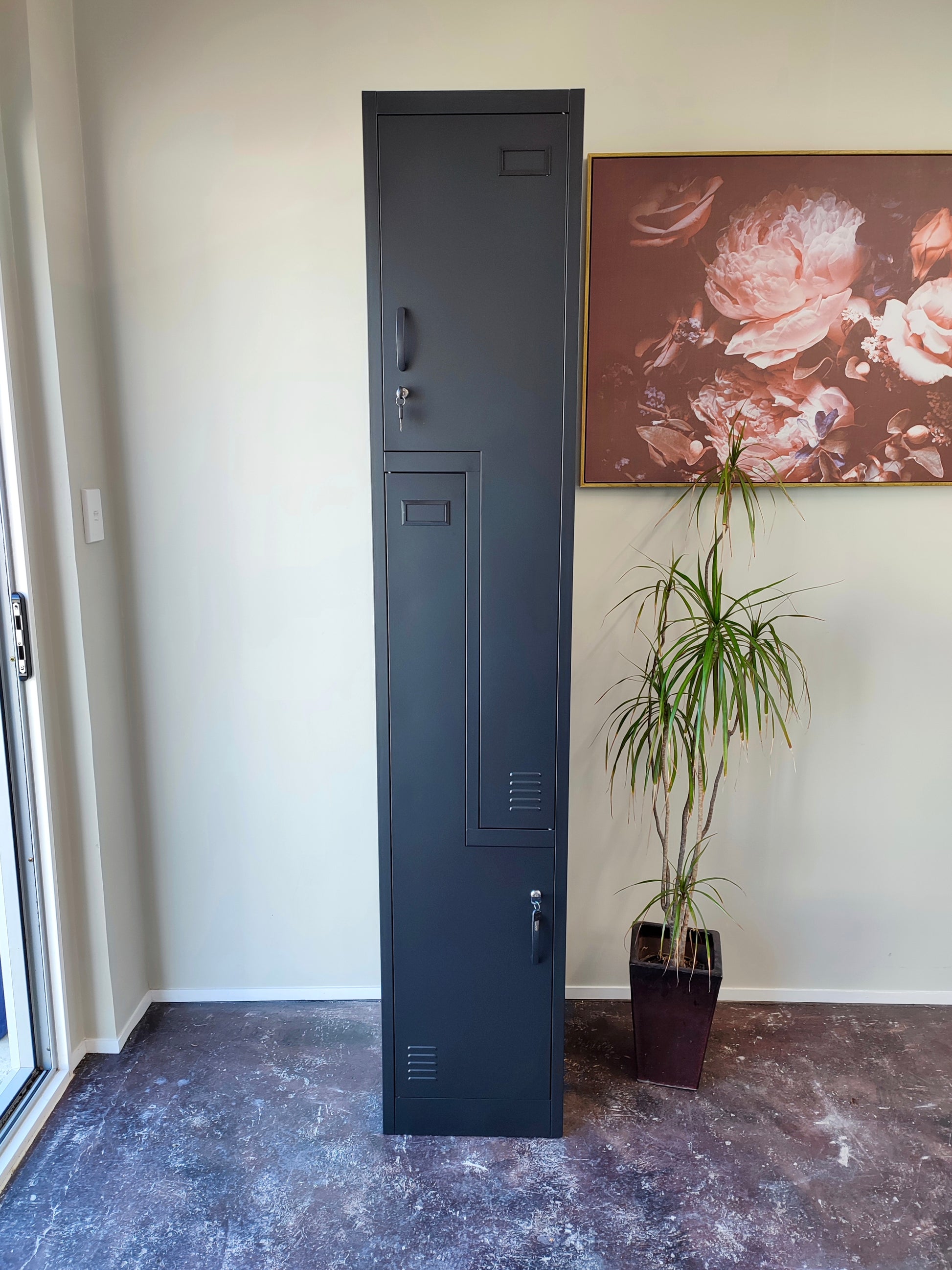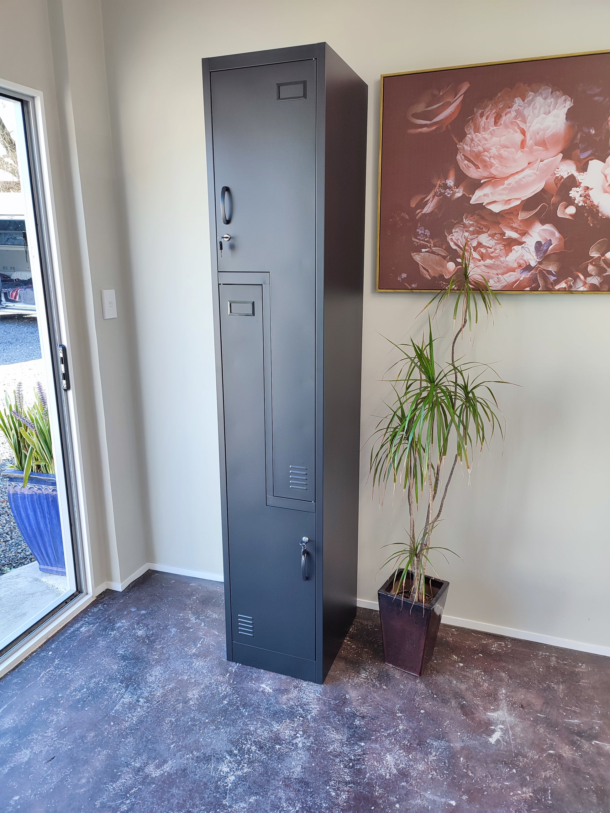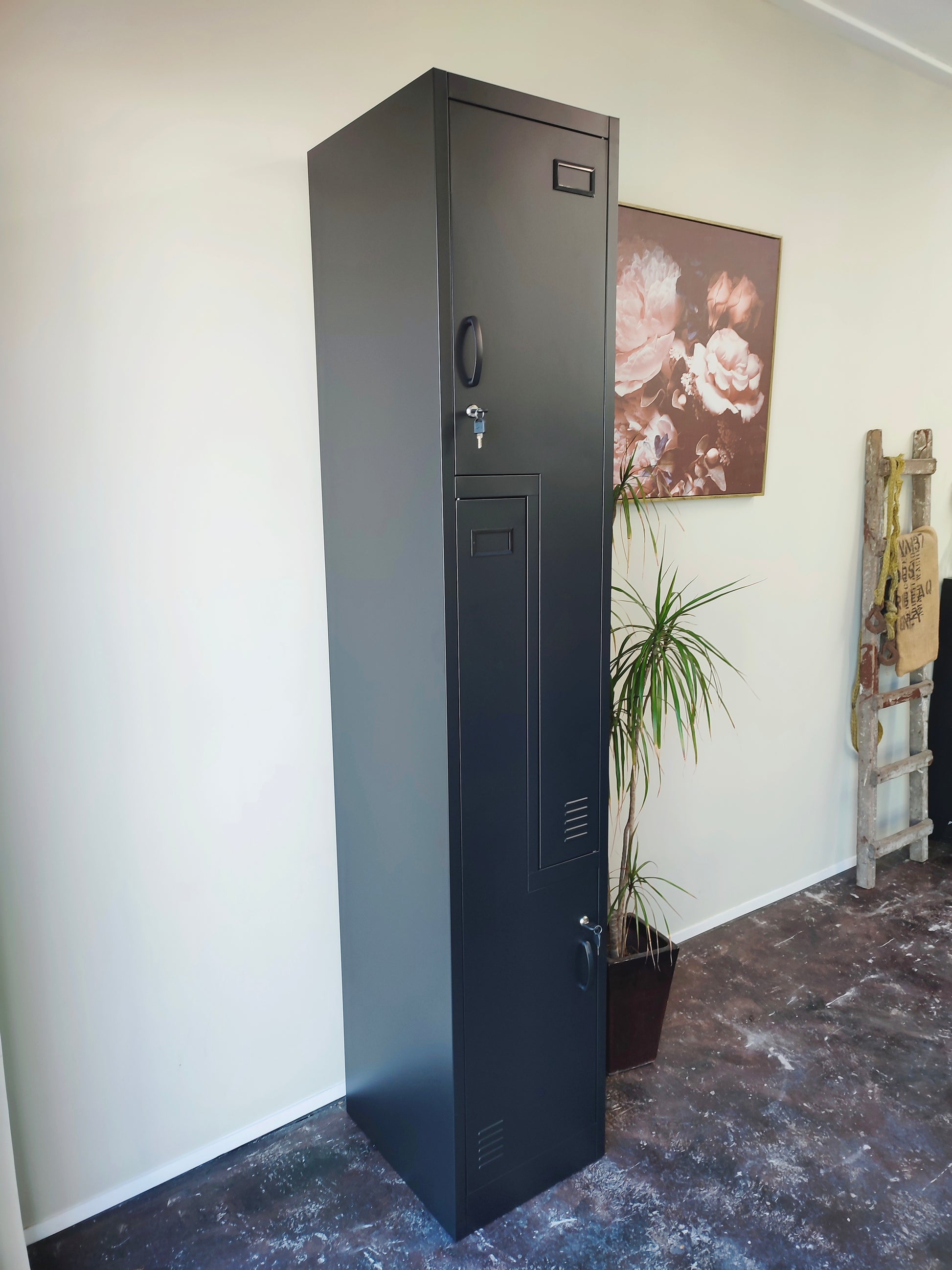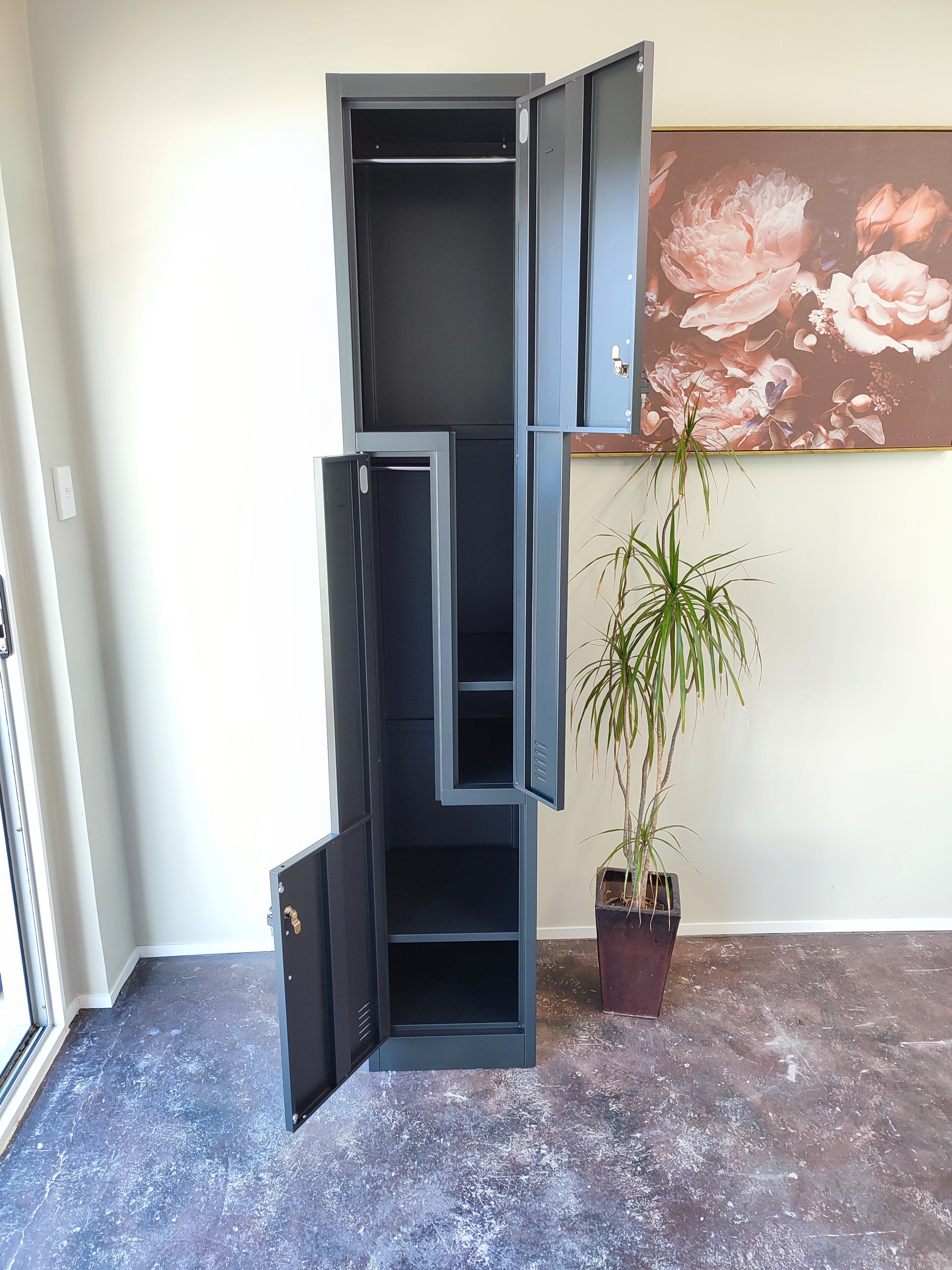The L 2 Door Locker is great for that small skinny spot, staff lockers, wardrobe, mudroom, the garage or office storage.