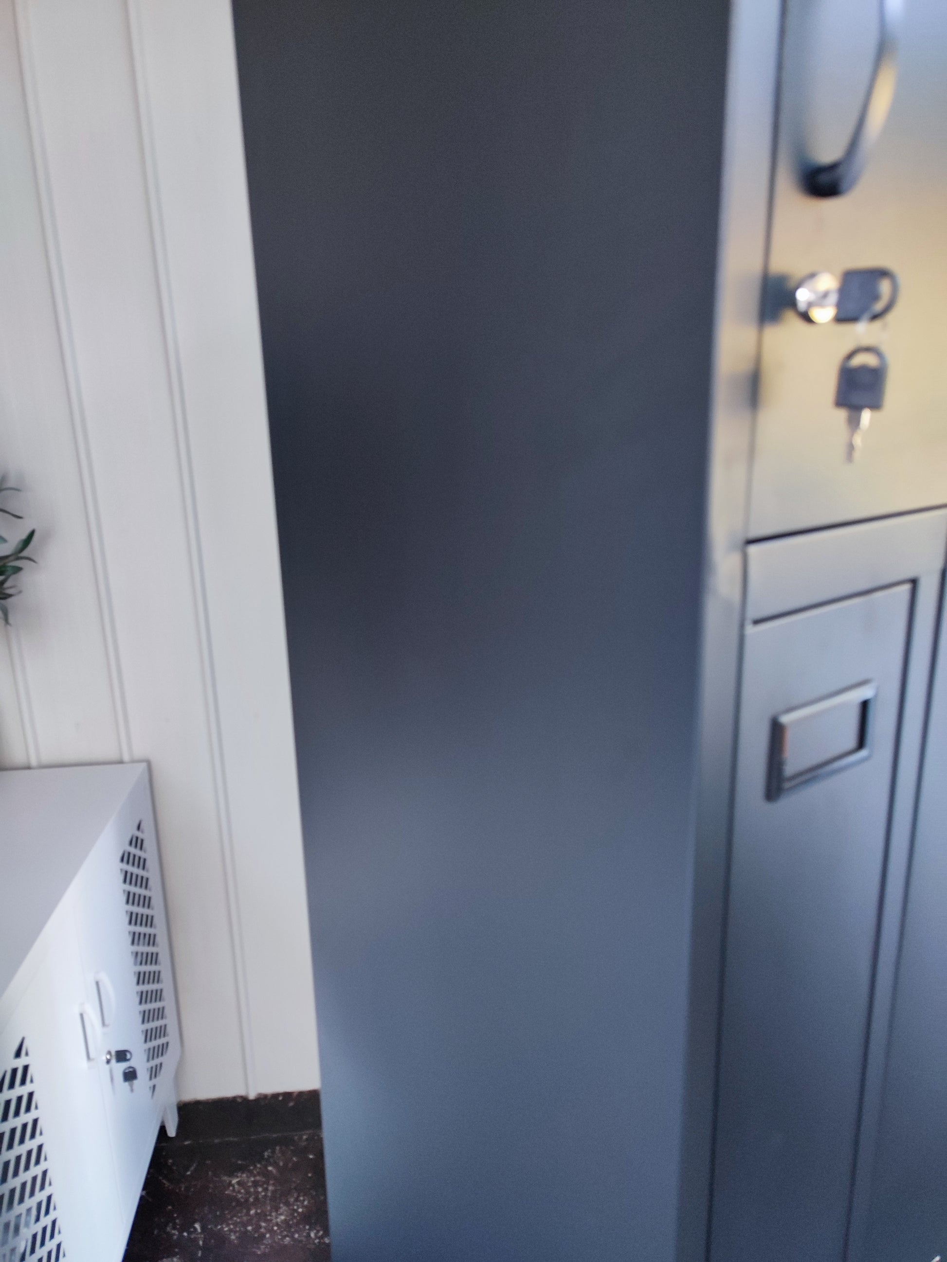 This one has been marked down due to damage incurred while unloading. Superficial dents, don't effect the use of the locker, see last 2 photos.