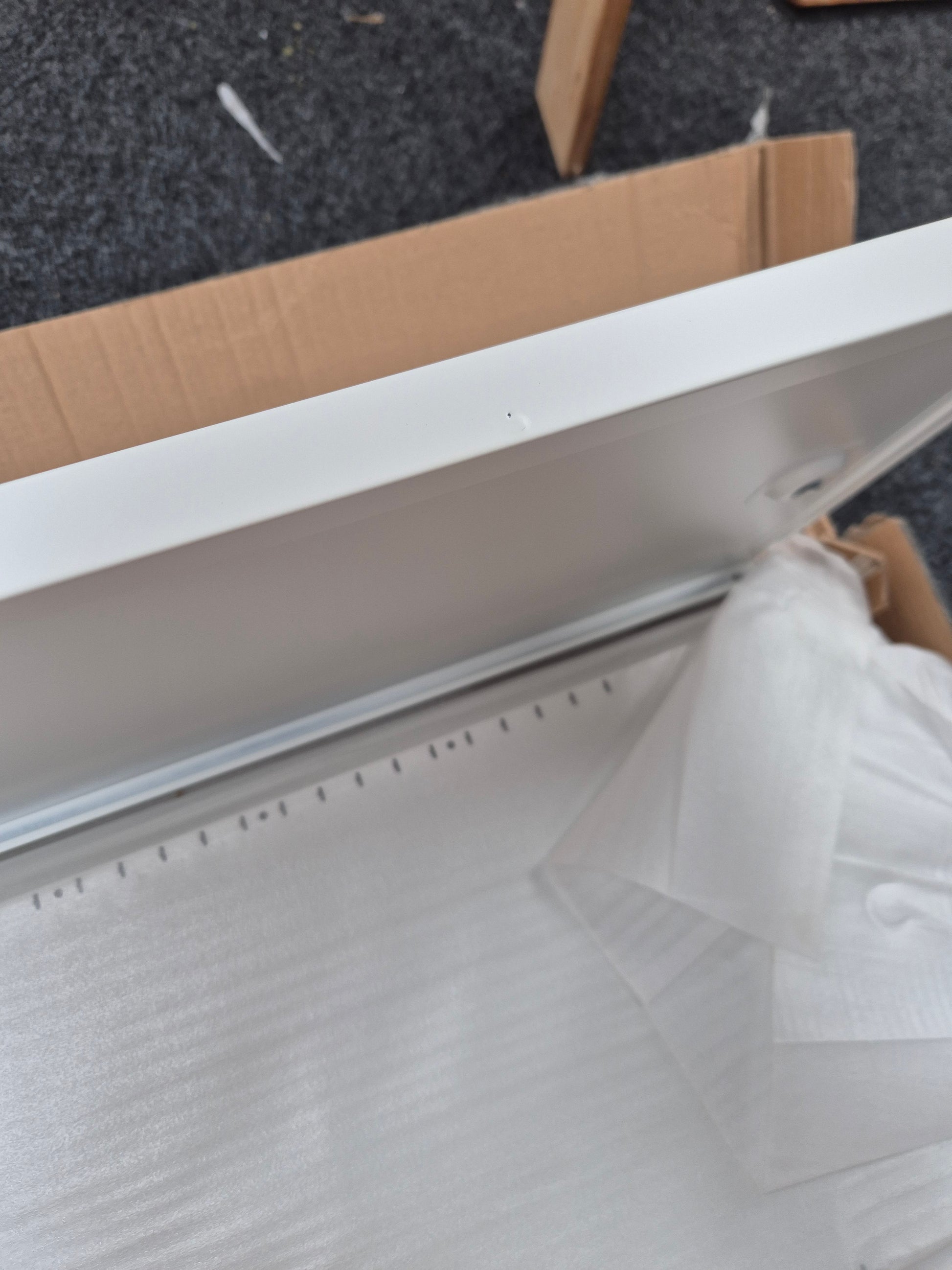 These are marked down mainly due to a dent on the left side and bottom doors handle holes being drilled in the wrong place (underneath lock). See photos
