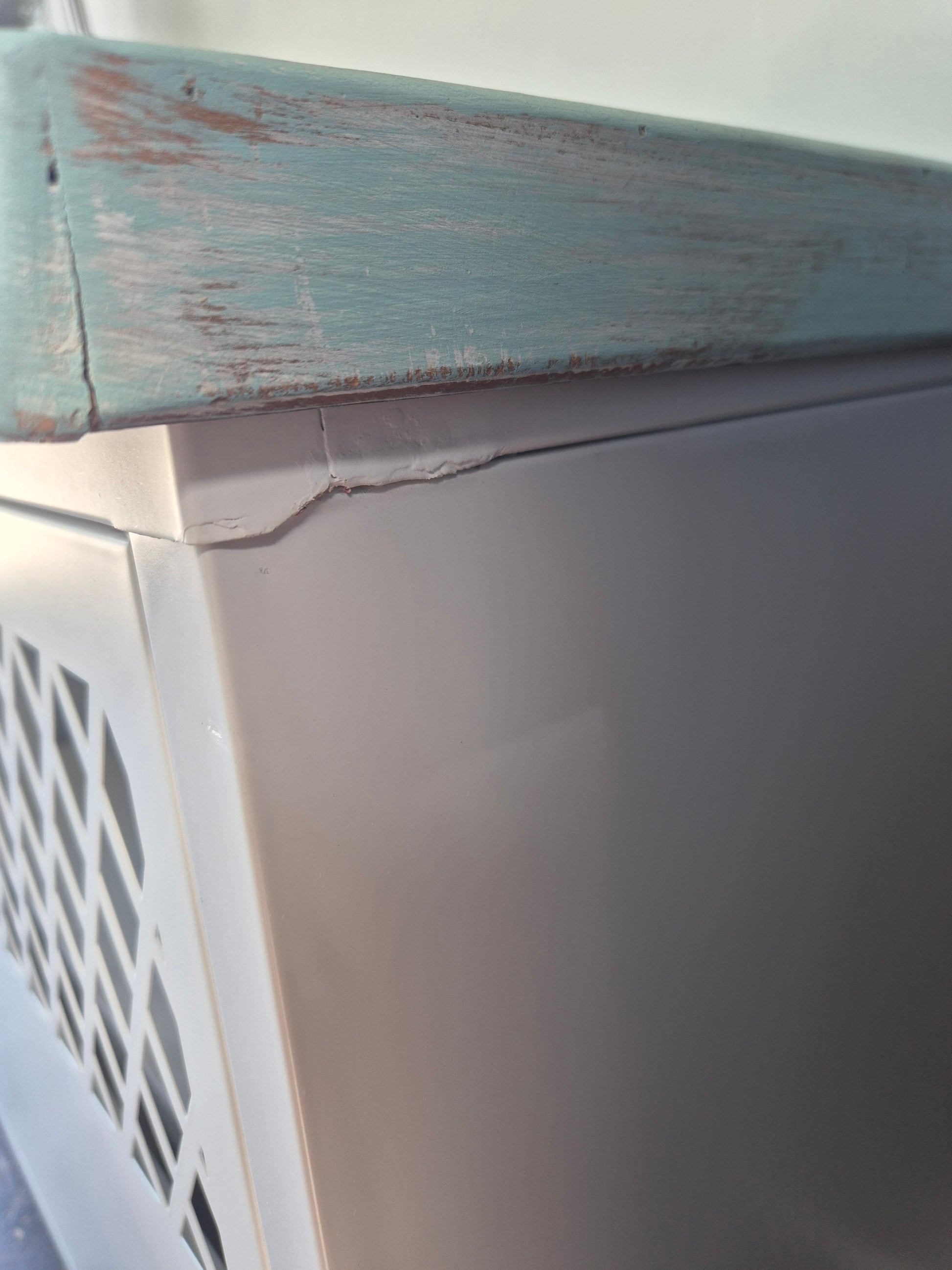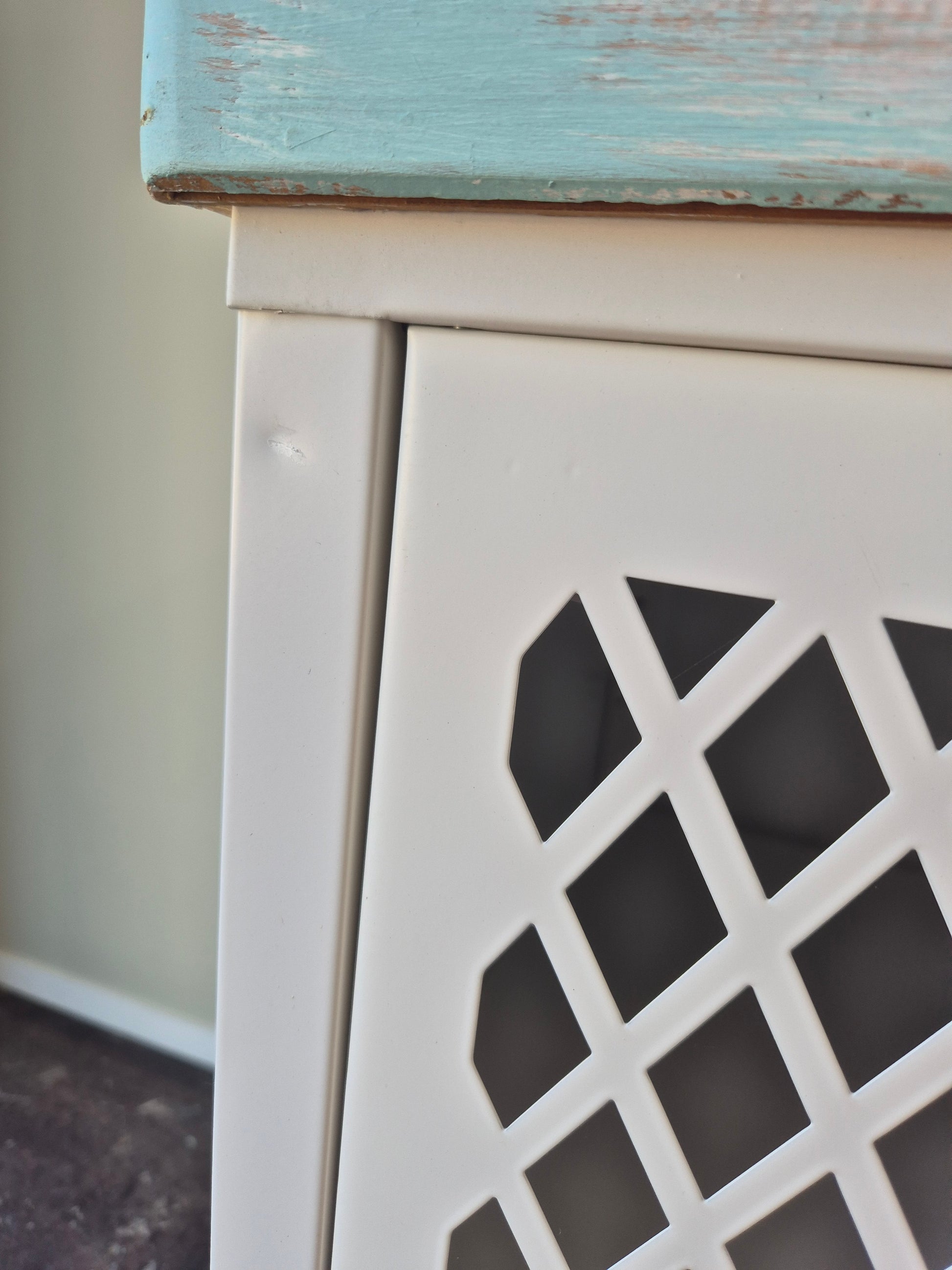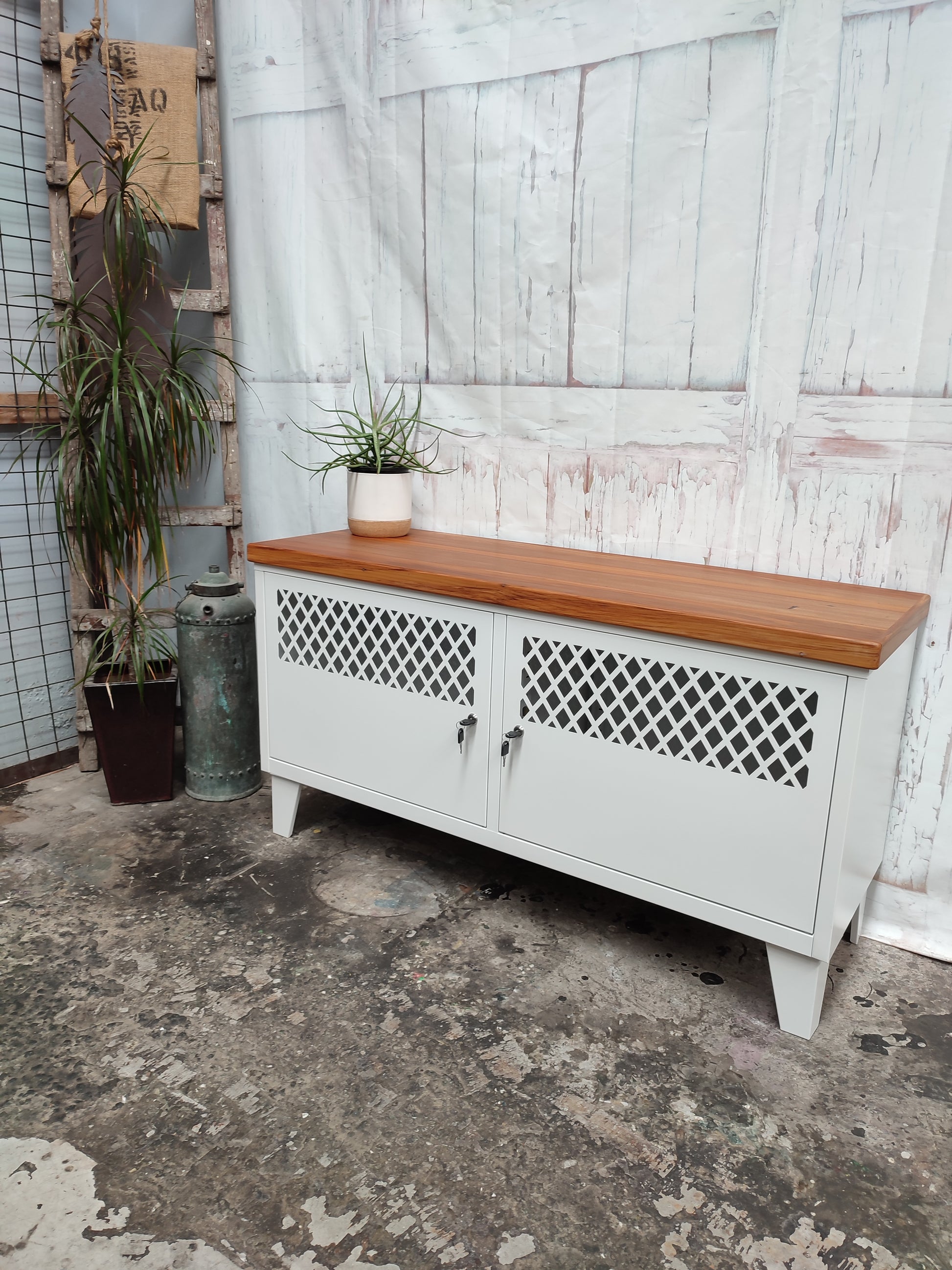 Add a Modern Industrial vibe to you home with this stunning White TV cabinet. This one has been marked down mainly due to a dent on the front frame and defects on both sides. See close up photos.