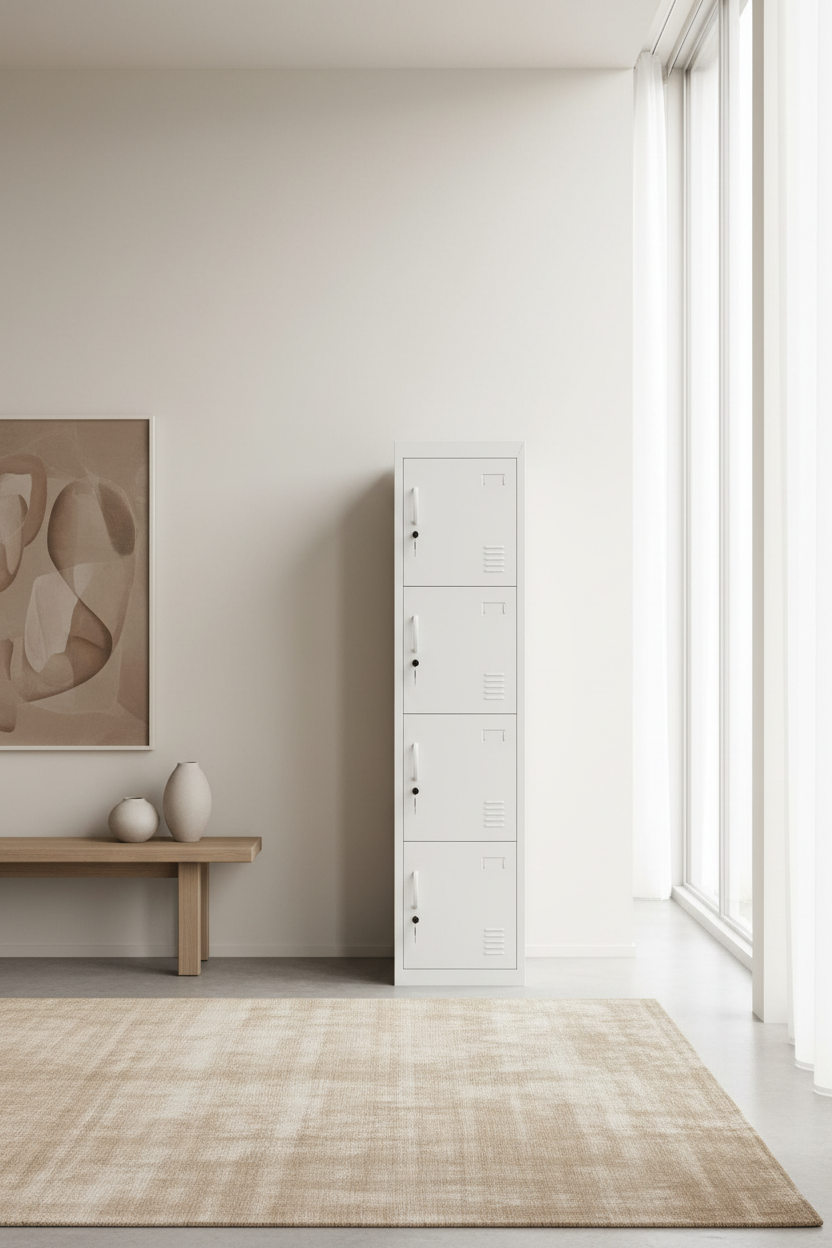 This practical 4 Door Steel Locker is designed to fit neatly into narrow spaces while still providing generous, well-organised storage. Its clean white finish and slimline design make it ideal for both home and workplace use.